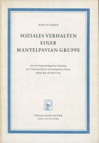 Kummer, Hans: Soziales Verhalten einer Mantelpavian-Gruppe. Aus der Tierpsychologischen Abteilung der Universität Zürich am Zoologischen Garten. Bern: Hans Huber 1957. Gr.-8°. 91 S., 24 Abbildungen, 10 Tabellen, Bibliographie, broschiert (Stempel auf Titelblatt; ohne Vorsatzblatt; sonst gut erhalten)