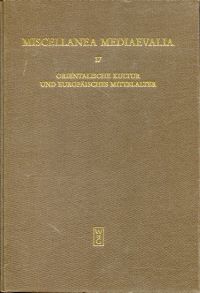 Zimmermann, Albert/Craemer-Ruegenberg, Ingrid (Hrsg.): Orientalische Kultur und europäisches Mittelalter. Für den Druck besorgt von Gudrun Vuillemin-Diem. Berlin: Walter de Gruyter 1985. Gr.-8°. X, 440 S. Leinen (Anstreichungen auf S. 400-420). (=Miscellanea Mediaevalia, Veröffentlichungen des Thomas-Instituts der Universität zu Köln, Bd. 17)