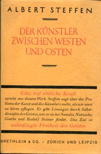 Steffen, Albert: Der Künstler zwischen Westen und Osten. Zürich: Grethlein 1925. 278 S. Leinen (Schutzumschlag mit leichten Randläsuren und leicht angestaubt; sonst altersgemäss gut erhalten)