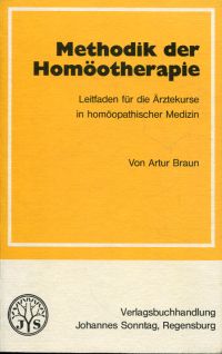 Braun, Artur: Methodik der Homöotherapie. Leitf. für d. Ärztekurse in homöopath. Medizin. 3., erweiterte u. verbesserte Aufl. Regensburg: Sonntag 1985. 8°. 232 S., broschiert (Ex Libris auf Vorsatz; gut erhalten) (=Biologische Fachbuchreihe ; Bd. 4)