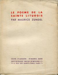 Zundel, Maurice: Le poème de la sainte liturgie. Saint-Maurice: Oeuvre St-Augustin 1934. 8°. 391 S., broschiert (angestaubt und angebräunt; Seiten teilweise nicht beschnitten)