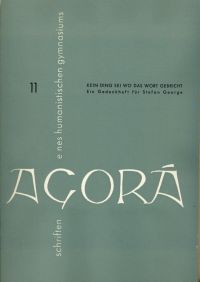 Schlösser, Manfred u.a. (Hrsg.): Kein Ding sei, wo das Wort gebricht. Ein Gedenkheft für Stefan George. Darmstadt: Ludwig-Georgs-Gymnasium 1958. 8°. 126 S., Abbildungen broschiert (Besitzervermerk auf Vorsatz; Ex Libris auf Innendeckel; Vorsatz mit kleiner Fehlstelle ohne Textverlust; son st gut erhalten) (=Agorá, Jg. 4. 1958, Nr. 11)