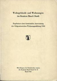 Wohngebäude und Wohnungen im Kanton Basel-Stadt. Ergebnisse einer kantonalen Auswertung der Eidgenössischen Wohnungszählung 1950. Basel: Statistisches Amt des Kanstons Basel Stadt 1956. 8°. VIII, 121 S., 1 gefalteter Plan, 33 Tabellen. broschiert (Umschalg leicht angestaubt; sonst gut erhalten) (=Mitteilungen des Statistischen Amtes des Kantons Basel Stadt, Nr. 72).
