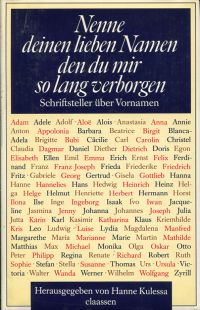 Kulessa, Hanne (Hrsg.): Nenne deinen lieben Namen, den du mir so lang verborgen. Schriftsteller über Vornamen. Düsseldorf: Claassen 1986. 8°. 363 S., Bibliographie, Pappband (Kopfschnitt leicht stockfleckig; sonst gut erhalten)