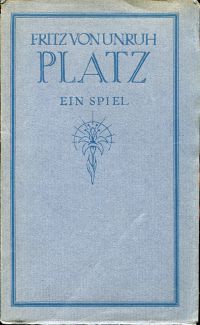 Unruh, Fritz von: Platz. Ein Spiel. 5. bis 19. Tsd. München: Wolff 1920. 8°. 158 S., broschiert Einband mit Gebrauchsspuren; Kaptal mit kleiner Fehlstelle; Papier altersbedingt leicht gebräunt; wenig abgegriffen) (=Ein Geschlecht, T. 2)
