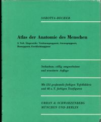 Sobotta, Johannes: Atlas der Anatomie des Menschen, 2. Teil: Eingeweide: Verdauungsapparat, Atmungsapparat, Harnapparat, Geschlechtsapparat. 16., völlig umgearbeitete und erweiterte Auflage mit neuer Nomenklatur versehen. München: Urban und Schwarzenberg 1965. Lex.-8°. XII, 256 S., 280 Abbildungen, davon 104 farbige und 128 sw-Abbildungen auf Tafeln sowie 18 farbige und 20 sw-Abbildungen im Text, Gebunden in Schuber (Schutzumschlag mit Randläsuren; sonst gut erhalten)