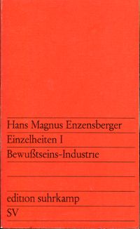 Enzensberger, Hans Magnus: Einzelheiten. Bandf1: Bewußtseins-Industrie. 8. Aufl. Frankfurt/Main: Suhrkamp 1973. 8°. 212 S. broschiert (Besitzervermerk auf Vorsatz; Papierbedingt leicht gebräunt; gut erhalten) (=Edition Suhrkamp, 63)