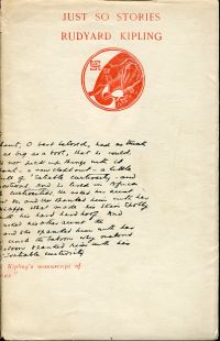 Kipling, Rudyard: Just so stories for little children. Illustrated by the author. Pocket edition. Reprinted. London: Macmillan 1928. Kl.-8°. [8],219,[1]S., Illustrationen, Gebunden (private Widmung auf Vorsatz; Schutzumschlag lädiert; Papier altersbedingt leicht gebräunt)