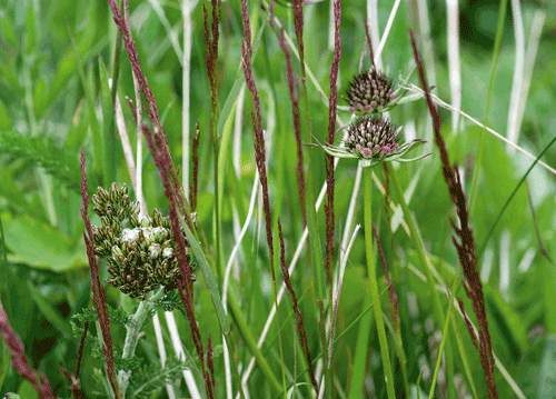 bildreich karten PK 1129: wiesengefluester I. Querformat. (Gräser, Skabiosen, Garten, Traumgarten, Wind) Mindestbestellmenge: 15 Karten (auch assortiert).