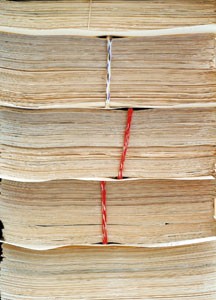 bildreich karten PK 144: gesammelte predigten 1931 bis 1951 I. Hochformat. (Predigt, Stapel, Papier, Schnur, Pfarrer) Mindestbestellmenge: 15 Karten (auch assortiert).