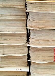 bildreich karten PK 145: gesammelte predigten 1931 bis 1951 II. Hochformat. (Predigt, Stapel, Papier, Schnur, Jahreszahlen, Pfarrer) Mindestbestellmenge: 15 Karten (auch assortiert).