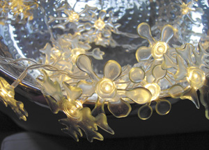 bildreich karten PK 214: lichtzauber III. Querformat. 2006. (Lichterketten, Licht, Stern, Blume, Eisblumen, silber, schale)