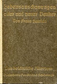 Sawicki, Franz: Lebensanschauungen alter und neuer Denker. Band 1: Das heidnische Altertum. 1. und 2. Aufl. Paderborn: Schöningh 1923. 8°. VIII, 175 S., Halbleinen mit Kopffarbschnitt (Papier altersbedingt gebräunt; altersgemäss gut erhalten)