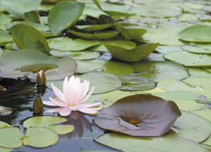 bildreich karten PK 269: divina flor. Querformat. 2007. (Seerosen, Blätter, Frosch, Schilf, Schatten, Spiegelung, Seerose) Mindestbestellmenge: 15 Karten (auch assortiert).