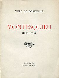 Montesquieu. (1689 – 1755) ; exposition organisée à la Bibliothèque Muncipale pour commémorer de deuxième centenaire de la mort de Montesquieu, mai – juin 1955. Bordeaux 1955. 8°. 148 S., [4] Bl Illustrationen, Broschiert (Umschlag angestaubt; sonst gut erhalten)