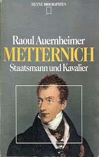 Auernheimer, Raoul: Metternich. Staatsmann u. Kavalier. Genehmigte, erweiterte Taschenbuchausgabe. München: Heyne 1977. 8°. 352 S., sw-Abbildungen, Broschiert (Besitzervermerk auf Vorsatz; Ex Libris auf Innendeckel; Papierbedingt gebräunt; sonst gut erhalten) (=Heyne-Biographien, 33)
