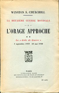 Churchill, Winston: La Deuxième guerre mondiale. 1. L’Orage approche, 2. partie: La Drôle de guerre, 3. septembre 1939-10 mai 1940… Paris: Plon 1948. 8°. 390 S., 16 Karten, Broschiert (angebräunt; Einband mit leichten Gebrauchsspuren; sosnt altersgemäss gut erhalten)