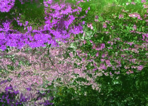 bildreich karten PK 519: omaggio a felice piacenza. Querformat. (Spiegelung, Azaleen, Azalea, Biella) Mindestbestellmenge: 15 Karten (auch assortiert).