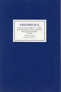 Friedrich II.: Auszierung zur Arie „Digli ch’io son fedele“ aus der Oper „Cleofide“ von Johann Adolf Hasse. Faks. d. Hs. aus d. Bestand d. Dt. Staatsbibliothek, Berlin. Wiesbaden/Leipzig: Breitkopf und Härtel c 1991. 2° 2 Bl. in Umschlag. Leinenmappe (gut erhalten)