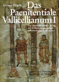 Hägele, Günther: Das Paenitentiale Vallicellianum I. Ein oberitalienischer Zweig der frühmittelalterlichen kontinentalen Bussbücher. Überlieferung, Verbreitung und Quellen Sigmaringen: Thorbecke 1984. 8°. 107 S., Quellen, Bibliographie, Personen-, Orts- und Sachregister Leinen (gut erhalten) (=Quellen und Forschungen zum Recht im Mittelalter; 3)