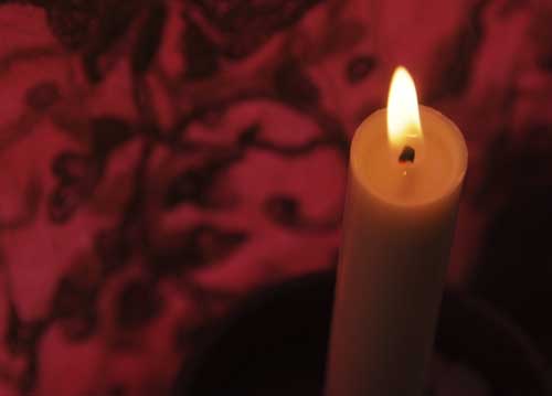 bildreich karten PK 557: venezia. Querformat. (Kerze, Kerzenlicht, Vorhang, Stickerei, Stoff)
