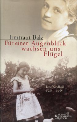 Balz, Irmtraut: Für einen Augenblick wachsen uns Flügel. Eine Kindheit 1933-1945. Köln: Kiepenheuer & Witsch 2002. 8°. 368 S., Zeittafel, Leinen (Schutzumschlag-Rücken bestossen; Schutzumschlag berieben; Mängelstempel auf Buchblock; sonst gut erhalten) Ein unverwechselbarer und anrührender Bericht einer Kindheit im Dritten Reich, die zugleich ein Beitrag zur Heimat- und Zeitgeschichte leistet.