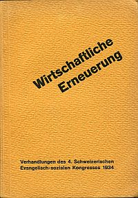 Wirtschaftliche Erneuerung. Bericht über den 4. Schweizerischen Evangelisch-Sozialen Kongreß in Zürich, 28.-29.April 1934 mit der vollinhaltlichen Wiedergabe der Hauptvorträge enthaltend die Erklärungen von Herrn Bundesrath Dr. Edm. Schultheß zu den wirtschaftlichen Problemen der Gegenwart. Zürich-Seebach: Verlag des Schweiz. Verbandes Evangelischer Arbeiter und Angestellter 1934. 8°. 128 S., Broschiert (Umschlag leicht angestaubt; Papier altersbedingt leicht gebräunt; altersgemäss gut erhalten)