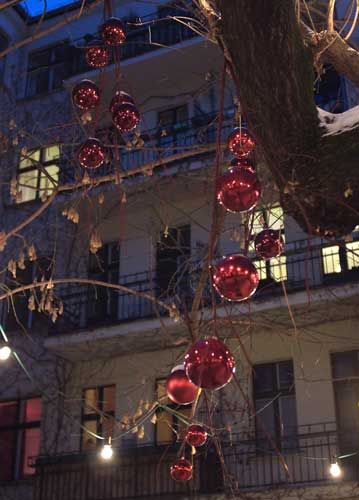 bildreich karten PK 866: kugelkaskaden. Hochformat. (Weihnachtsschmuck, Weihnachtsdekoration, Glas, Hof, Innenhof, Haus) Mindestbestellmenge: 15 Karten (auch assortiert).