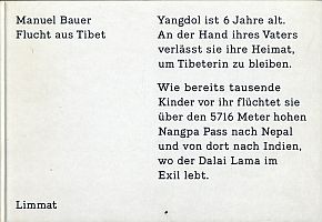 Bauer, Manuel: Flucht aus Tibet. Zürich: Limmat 2009. quer- Gr.-8°. [117] Bl., durchgehend sw-Abbildungen, Pappband Einband mit leichten Gebrauchsspuren und wenig befleckt; sonst gut erhalten)