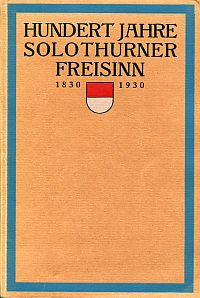 Solothurn Büchi, Hermann: Hundert Jahre Solothurner Freisinn. 1830-1930. Solothurn: Vogt-Schild 1930. 8°. 331 S., 16 Tafeln, broschiert (Besitzervermerk auf Vorsatz; Rücken wenig befleckt und abgeblasst; sonst altersgemäss gut erhalten)