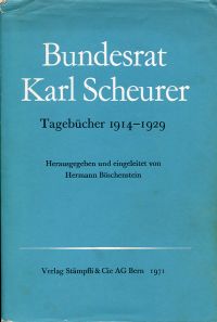Böschenstein, Hermann (Hrsg.): Bundesrat Karl Scheurer. Tagebücher 1914-1929. Bern: Stämpfli 1971. 8°. 390 S.,1 Frontispiz, einige Tafeln, Zeittafel, Quellen, Register Leinen (Schutzumschlag mit leichten Randläsuren; gut erhalten)