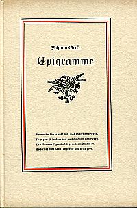 Grob, Johann: Epigramme. Bern: Francke 1939. 8°. 64 S., Pappband (Besitzervermerk auf Vorsatz; Ex Libris auf Innendeckel; leicht stockfleckig; sonst altersgemäss gut erhalten) CHF 12.00 |