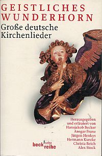 Becker, Hansjakob u.a. (Hrsg. und erläutert): Geistliches Wunderhorn. große deutsche Kirchenlieder. 1. Aufl. in der Beck’schen Reihe. München: Beck 2009. 8°. 559 S., 74 Abbildungen, Notenbeispiele, broschiert (Besitzervermerk auf Vorsatz; Ex Libris auf Innendeckel; gut erhalten) (=Beck’sche Reihe, 1928)