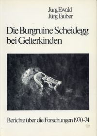 Ewald, Jürg/Tauber, Jürg: Die Burgruine Scheidegg bei Gelterkinden. Berichte über die Forschungen 1970-74. Mit Beiträgen von Bruno Kaufmann, Werner Meyer und Rolf Schelker. Olten: Walter 1975. 4°. 147 S., zahlreiche sw-Fotografien, Zeichnungen, Pläne, broschiert (Einband mit leichten Gebrauchsspuren; gut erhalten) (=Schweizer Beiträge zur Kulturgeschichte und Archäologie des Mittelalters, Bd. 2).