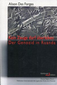 Des Forges, Alison: Kein Zeuge darf überleben. der Genozid in Ruanda. Neuausgabe, 1. Auflage. Hamburg: Hamburger Edition 2016. 8°. 946 S., broschiert (Schnitt befleckt; gut erhalten)