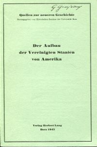 Hochuli, Hans: Der Aufbau der Vereinigten Staaten von Amerika. Bern: Lang 1945. 8°. 56 S. broschiert Besitzervermerk auf Umschlag und Titelblatt; gut erhalten) (=Quellen zur neueren Geschichte ; H. 6) Der Mayflower-Vertrag 1620; Menschenrechte und Verfassung von Virginia 1776; Die Unabhängigkeitserklärungder 13 Staaten 1776; Die Konföderationsartikel 1777; Die Verfassung der Vereinigten Staaten 1787; Die Ohio-Ordonnanz 1787.