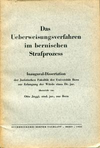 Jæggi, Otto: Das Überweisungsverfahren im bernischen Strafprozess. Bern: Berner Tagblatt 1935. 75 S., Broschiert (Papier altersbedingt leicht gebräunt; altersgemäss gut erhalten) (=Dissertation Bern 1935)