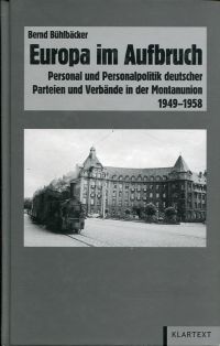 Bühlbäcker, Bernd: Europa im Aufbruch. Personal und Personalpolitik deutscher Parteien und Verbände in der Montanunion 1949 – 1958. 1. Aufl. Essen: Klartext 2007. 8°. 405 S., sw-Abbildungen, Pappband (Buchblock leicht verzogen; sonst gut erhalten) (=Veröffentlichungen des Instituts für Soziale Bewegungen; Schriftenreihe A, Darstellungen, 38)