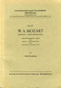 Forneberg, Erich: W. A. Mozart. Lebens- u. Werkstil. Synaesthetisch-typologischer Vergleich mit Bach – Beethoven u. Goethe – Schiller. Würzburg: Triltsch 1956 Gr.-8°. XVI, 65 S.; Anhang: 6 Bll. Notenbeispiele, Broschiert (Einband mit leichten Gebrauchsspuren; gut erhalten) (=Literarhistorisch-musikwissenschaftliche Abhandlungen, Bd. 14)