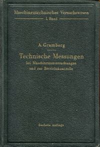 Gramberg, Anton: Technische Messungen bei Maschinenuntersuchungen und zur Betriebskontrolle. Zum Gebrauch an Maschinenlaboratorien u. in d. Praxis. 6., vielf. erneuerte u. umgearb. Aufl. Berlin: J. Springer 1933. Gr.-8°. XV, 488 S. Mit 395 Abbildungen im Text. Leinen (Besitzervermerk verso Titelblatt; Buchblock genickt; Einband mit leichten Gebrauchsspuren; Einbandecken beschabt; sonst altersgemäss gut erhalten) (=Maschinentechnisches Versuchswesen ; Bd. 1)