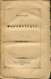 George, Leopold: Lehrbuch der Psychologie. Berlin: Reimer 1854. 8°. X, 588 S., Broschiert (Seiten nicht beschnitten; Schnitt leicht angebräunt; altersgemäss gut erhalten)