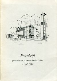 Festschrift zur Weihe der S[ank]t Martinskirche, Zuchwil. 15. Juli 1956. Zuchwil: Katholische Kirchgemeinde 1956. Gr.-8°. 39 S., sw-Abbildungen, Geheftet (gut erhalten)