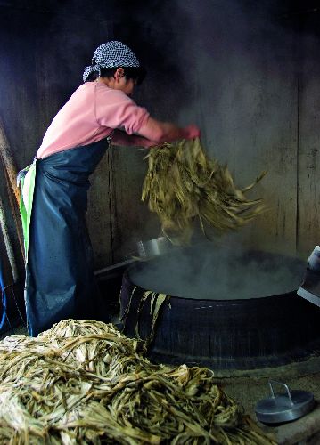 bildreich karten PK 548: vorbereitung von kozo fuer die papierherstellung.
