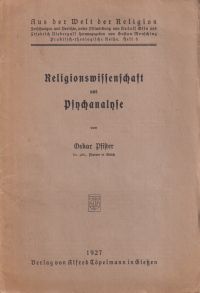 Pfister, Oskar: Religionswissenschaft und Psychanalyse. Giessen: Töpelmann 1927. Kl.-8°. 31 S. Broschiert (stockfleckig; Bleistiftanstreichungen am Textrand) (=Aus der Welt der Religion. Religionswissenschaftliche Reihe, 9)