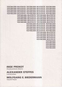 Textbilder, Bildtexte. [Katalog-Mappe zur Ausstellung Textbilder, Bildtexte, Wolfgang E. Biedermann, Visuelle Poesie, Inge Prokot, Enzyklopädische Malerei, Alexander Steffes, Literaturbilder ; Ausstellung vom 9.7. – 10.9.1998 im Deutschen Buch- und Schriftmuseum und im Foyer der Deutschen Bücherei Leipzig]. Katalogmappe mit 3 Heften. Frankfurt/Main u.a.: Deutsche Bibliothek 1998. Lex.-8°. nicht paginiert (insgesamt 82 S.), zahlreiche Farb- und sw-Abbildungen, Kartoniert in Mappe (gut erhalten)