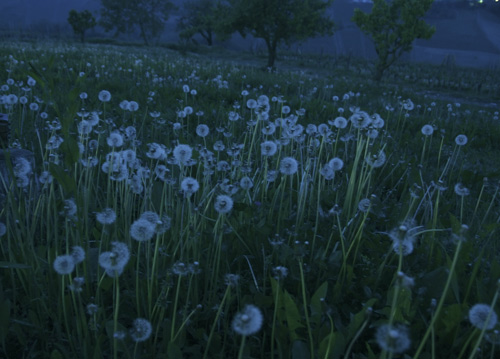 bildreich karten PK 619: abendstunde. Querformat. (Löwenzahn, Wiese, Abend, Dämmerung, Abendlicht)