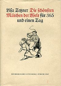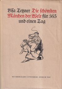Tetzner, Lisa (Hrsg.): Die schönsten Märchen der Welt für 365 und einen Tag, Band 3. Zürich: Büchergilde Gutenberg 1949. Gr.-8°. 312 S., mit 2 farbigen Tafeln u. 24 Textabbildungen von Maria Braun, Leinen (Schutzumschlag mit leichten Randläsuren; Ex Libris auf Innendeckel; gut erhalten)