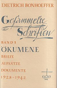 Bonhoeffer, Dietrich: Ökumene. Briefe, Aufsätze, Dokumente ; 1928 bis 1942. 2. Aufl. München: Kaiser 1965. 8°. 550 S., sw-Abbildungen, Leinen in Schuber (Besitzervermerk auf Vorsatz; gut erhalten) (=Gesammelte Schriften. Hrsg. von Eberhard Bethge ; Bd. 1)