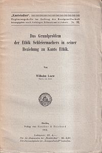 Loew, Wilhelm: Das Grundproblem der Ethik Schleiermachers in seiner Beziehung zu Kants Ethik. Berlin: Reuther & Reichard 1914. 8°. VIII, 113 S. Broschiert (Einband mit leichten Gebrauchsspuren; Seiten nicht beschnitten; altersgemäss gut erhalten) (=Kant-Studien, Ergänzungshefte, Erg. H. 31)