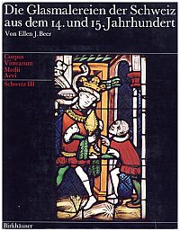 Beer, Ellen J.: Die Glasmalereien der Schweiz aus dem 14. und 15. Jahrhundert. Ohne Königsfelden u. Berner Münsterchor. Basel, Birkhäuser, 1965. 4°. 266 S., mit 18 Abbildungen u. Kt., 117 Bl. Abbildungen, Leinen (Schutzumschlag mit Randläsuren; gut erhalten) (=Corpus vitrearum medii aevi; Schweiz, Bd. 3)